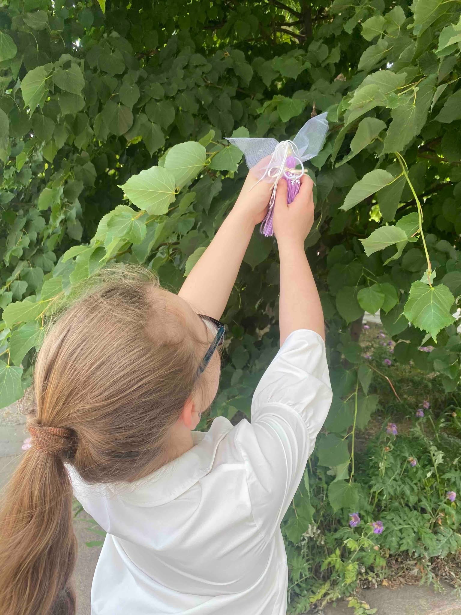 Після майстер-класу вихованці гуртків мовчазно пройшли до дерев на території закладу та розвісили своїх ангелів, вшановуючи кожного маленького янгола, якого ми втратили…
