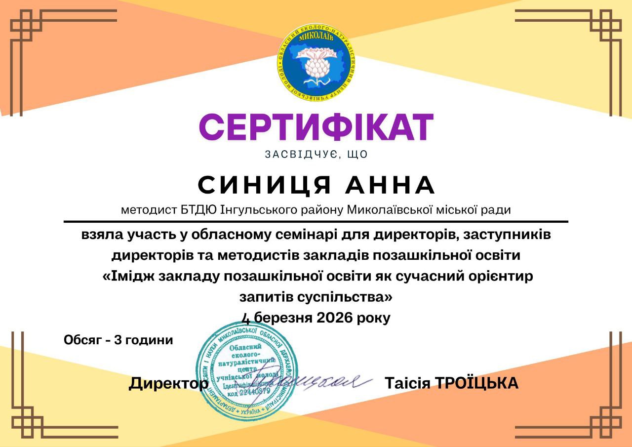 Методисти Будинку творчості дітей та юнацтва Інгульського району — Анна Синиця та Тетяна Терешонок — взяли участь в обласному семінарі для директорів, заступників директорів та методистів закладів позашкільної освіти на тему: