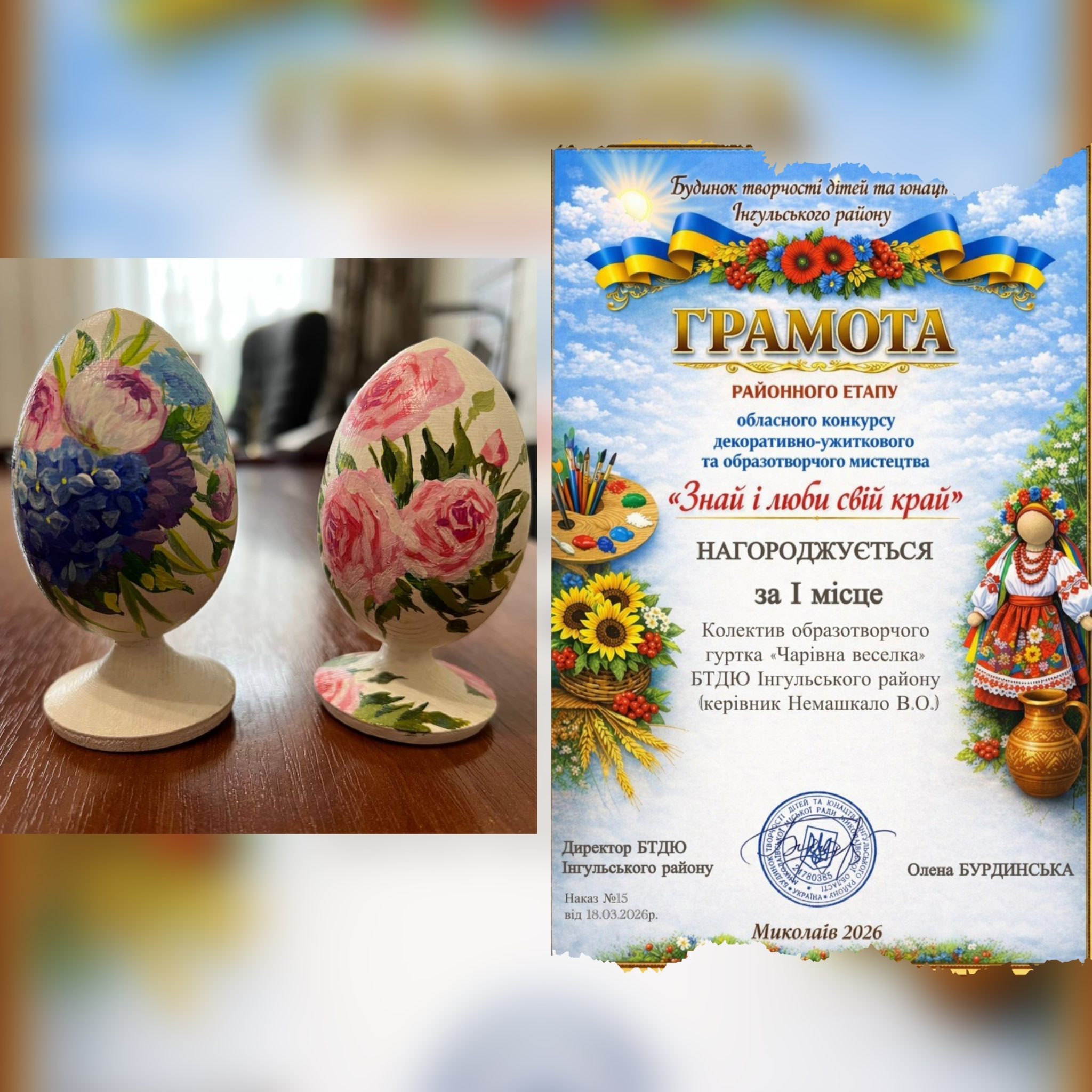 • Лікарчук Наталя, образотворчий гурток «Чарівна веселка», робота «Писанковий набір», керівник Немашкало В.О.