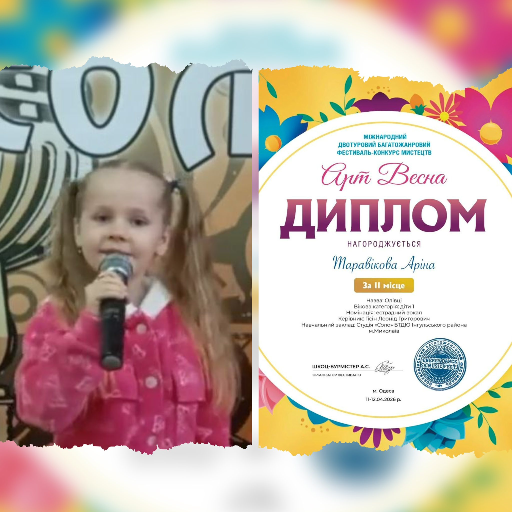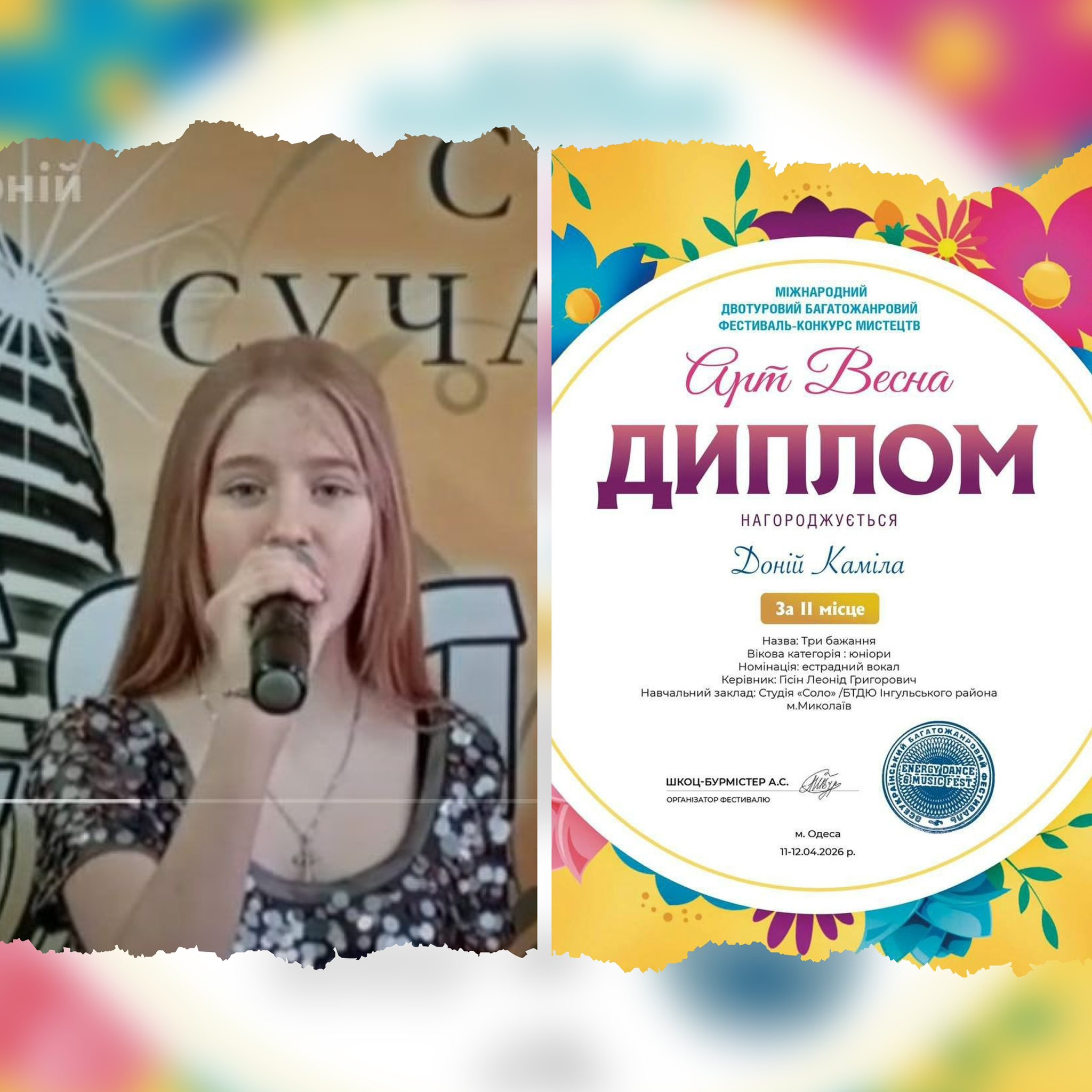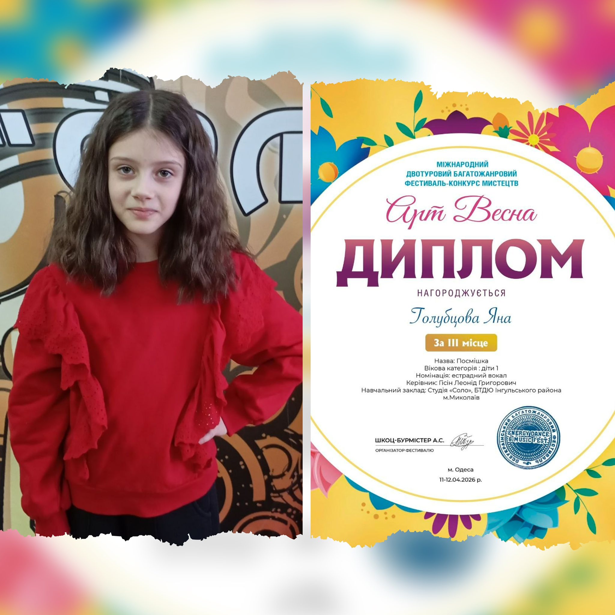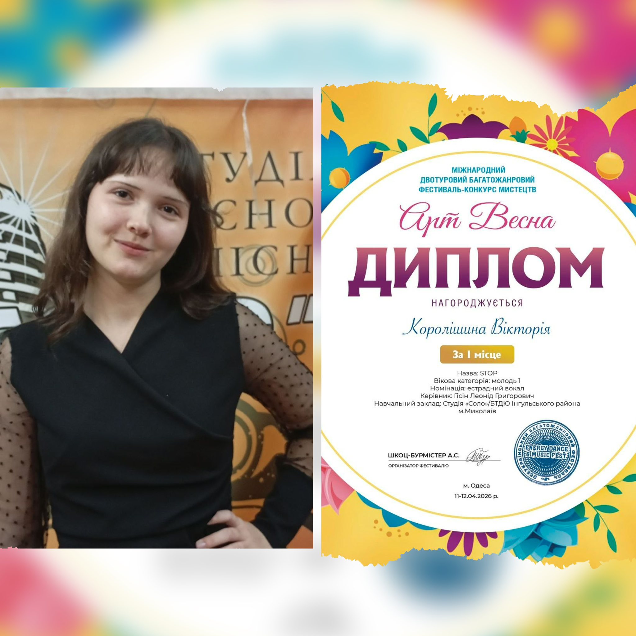 Гурток сольного співу «Соло» щиро вітає своїх вихованців із чудовими результатами у Міжнародному двотуровому багатожанровому фестивалі-конкурсі мистецтв «Арт Весна»! 💐